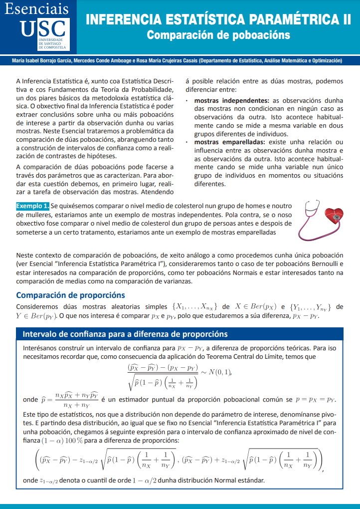 Inferencia Estatística Paramétrica II: comparación de poboacións